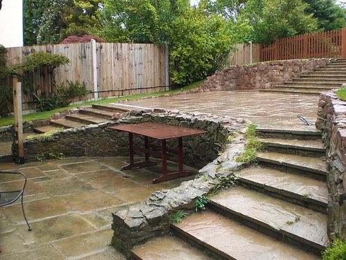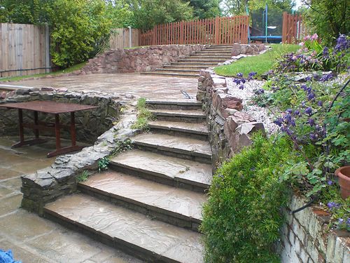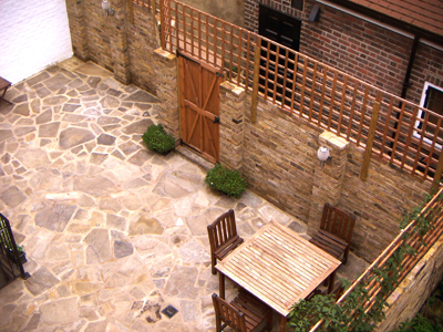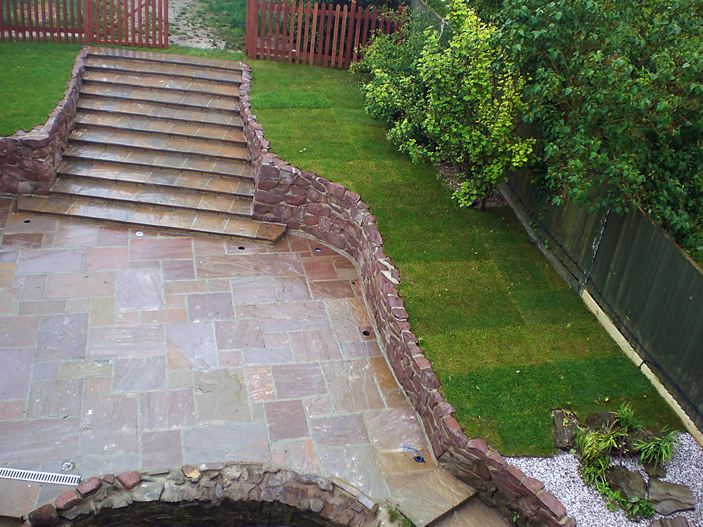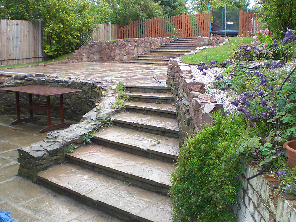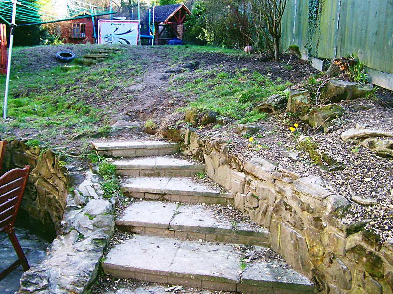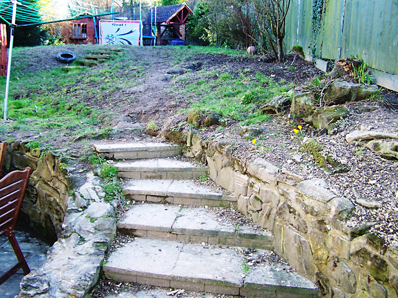 Below you can see images of works we done. On five images in upper line you see a back garden converted in a lovely and useful space. We did design of it, ground works, paving works on natural stone levelling all in one line. Work with that stone was very complicated because of the difference in thickness of each single stone but final result delighted everyone. There are light embedded along stairs and across, so it looks spectacular from the house when evening darkness comes.