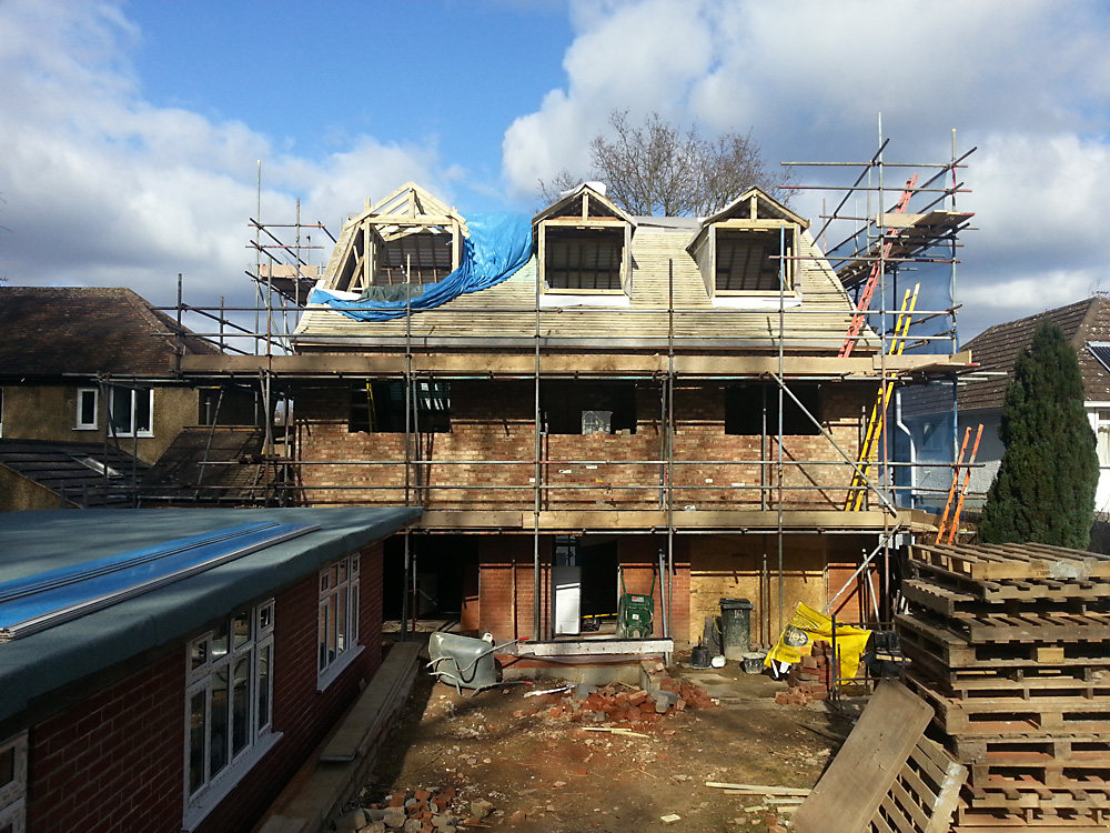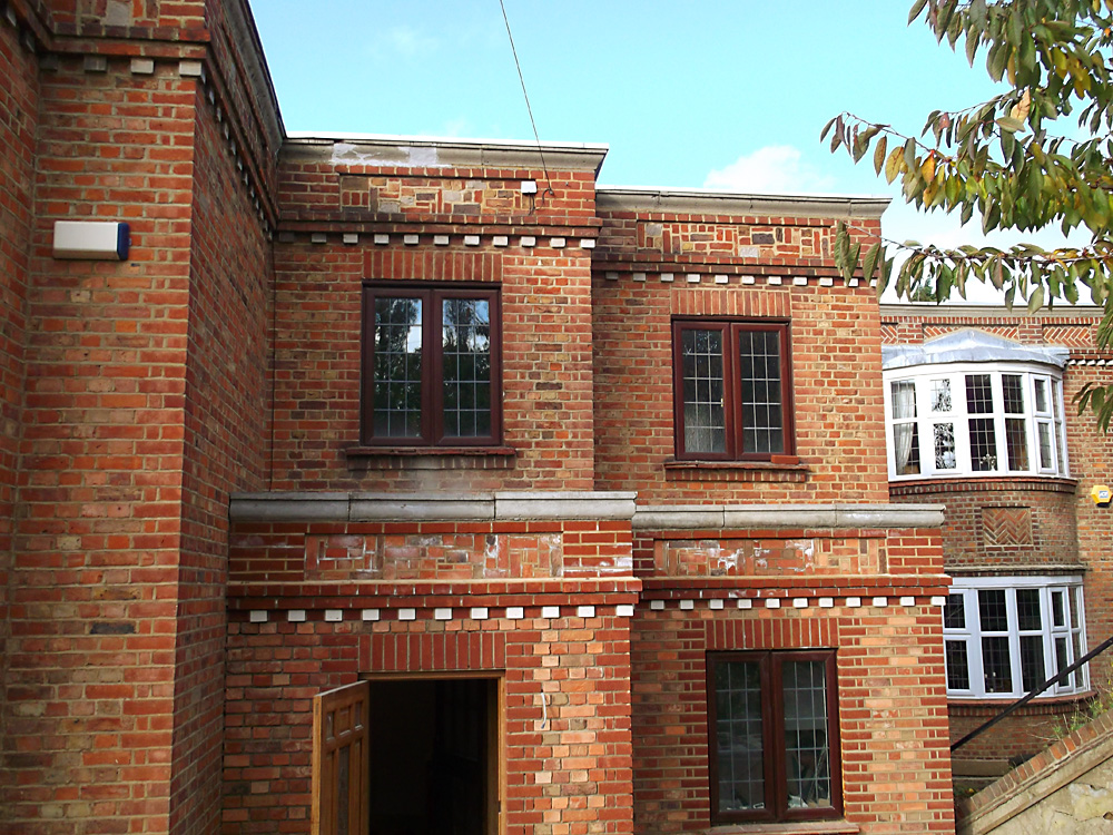 On images below you can see works we did on various properties. First is a house in Art décor style with a new extension build up following the pattern of brickwork on existing house. Just because we use new bricks new extension look fresher, if we would use old or recycled bricks in tone and composition then it would look exactly as the main house. Next two pictures show a house before and after refurbishment and development, it become slightly bigger and extension made kitchen nice and cosy. The rest of pictures show a house development in Surrey.