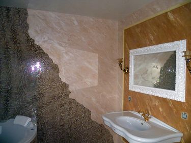 We can do any finish you like; depending on Venetian Plaster type we can imitate different type of natural stone, including marble. On pictures below you can see different finish with Venetian Plaster. As we mentioned before we can take care of whole job including interior design, supply of furniture and interior decorative elements, decoration including Venetian Plaster.